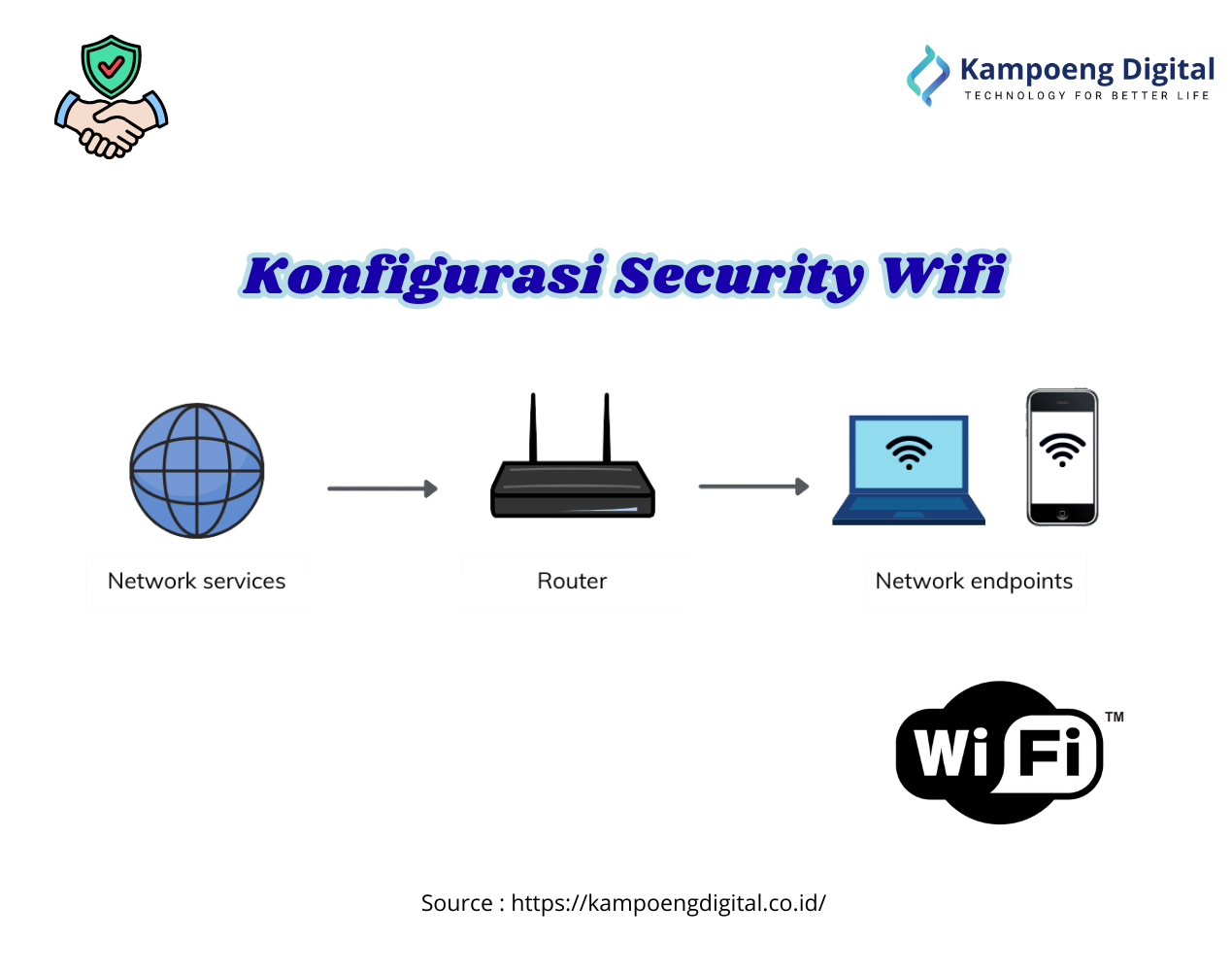 Layanan ini berfokus pada pengamanan jaringan WiFi menggunakan sistem keamanan WPA/WPA2/WPA3 untuk mencegah akses tidak sah. Konfigurasi dilakukan agar jaringan tetap aman tanpa mengurangi performa koneksi.