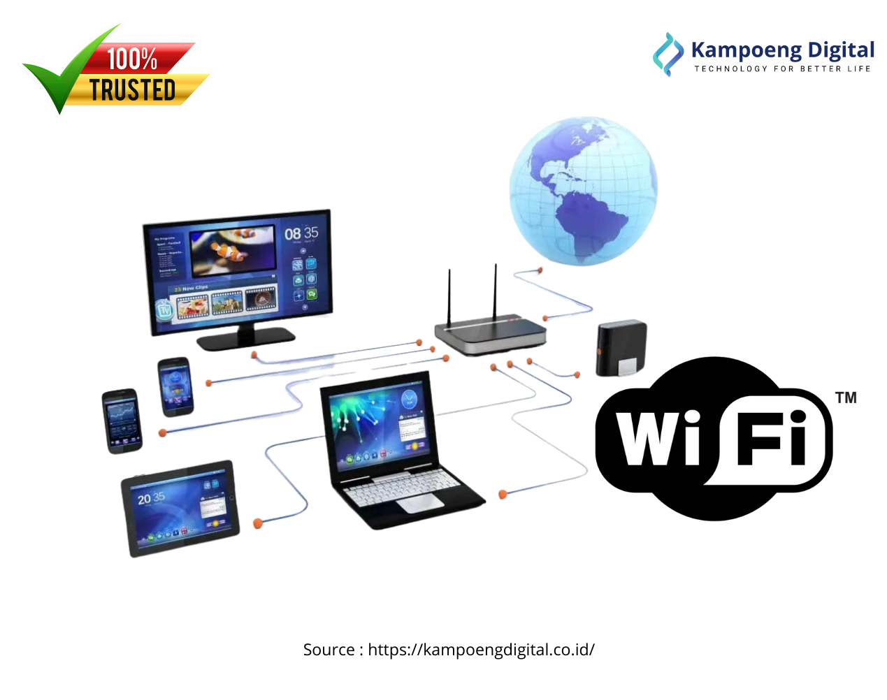 Kampoeng Digital didukung tim IT berpengalaman yang menangani instalasi WiFi secara profesional, mulai dari survey lokasi hingga konfigurasi jaringan. Kami memastikan koneksi stabil, jangkauan merata, dan keamanan jaringan agar WiFi siap digunakan untuk kebutuhan kantor, UMKM, maupun rumah.