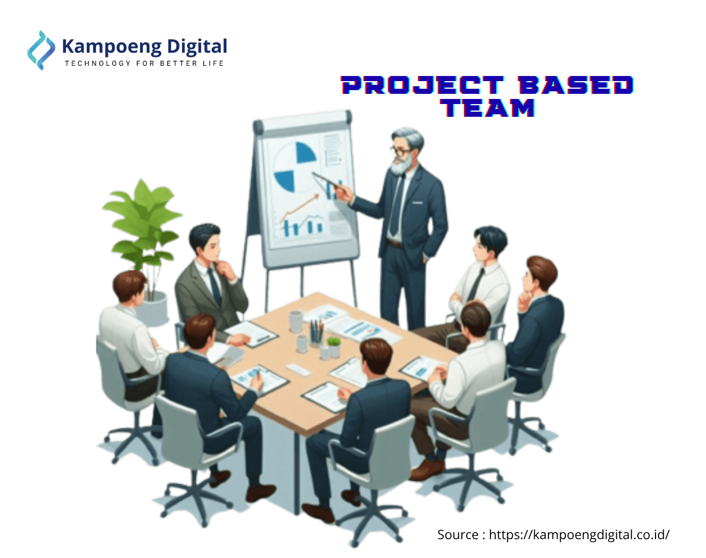 Model hybrid menggabungkan kelebihan dari dedicated team dan project-based.